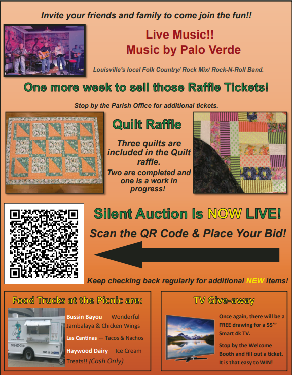 It’s picnic time at St. Leonard. They would like to invite you to join them in celebration Saturday, September 7th after their 4pm Mass, for some food, fun, fellowship and …