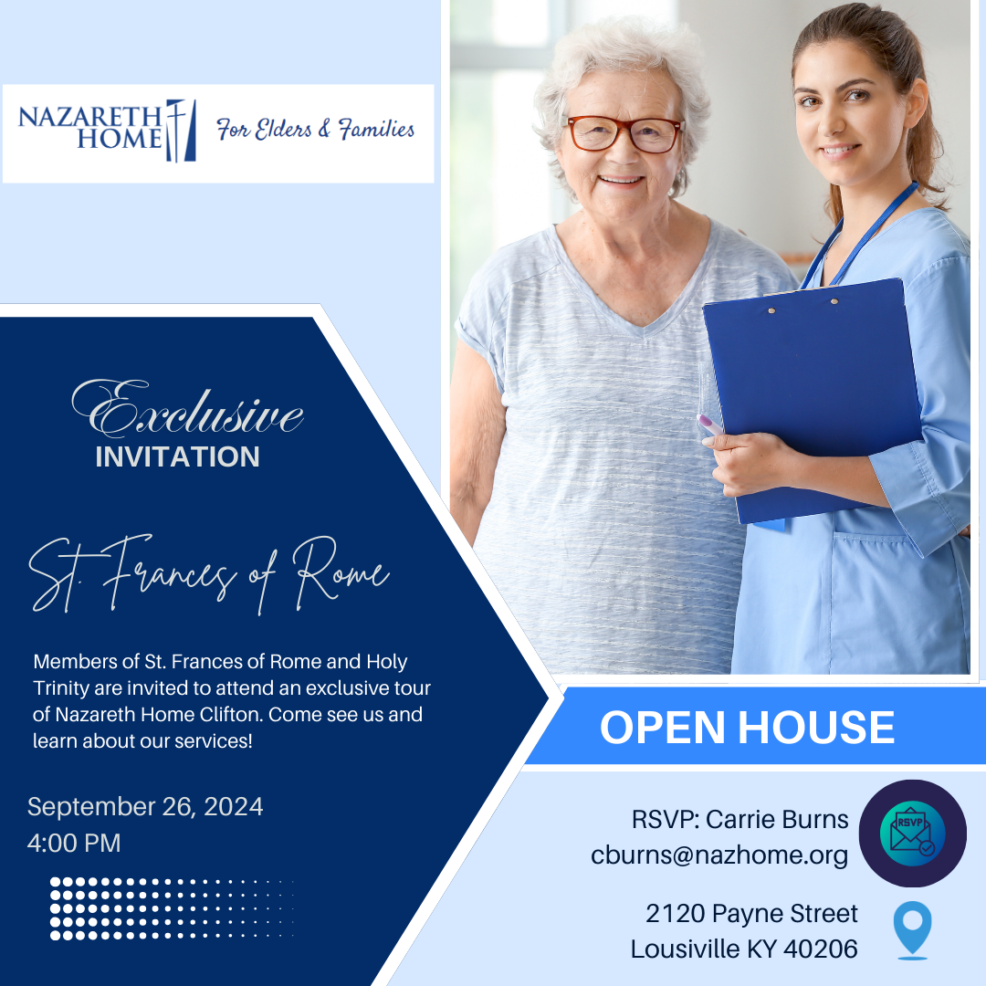 You’re invited to attend an exclusive tour of Nazareth Home Clifton on September 26th, 2024 at 4pm. Come see and learn about the services they provide.