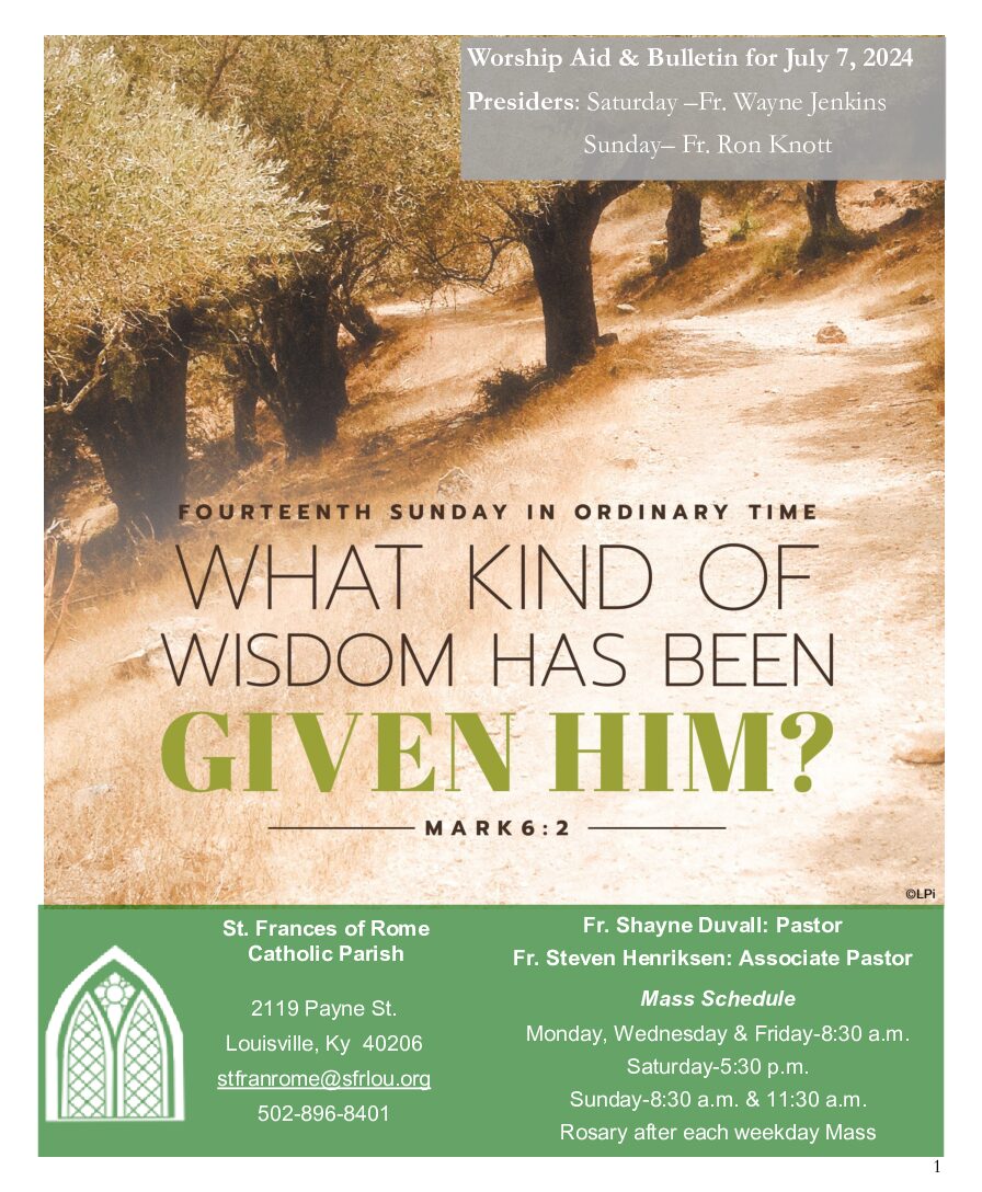 Dear St. Frances of Rome Parishioners, May God bless you! I hope you have a wonderful holiday week celebrating and giving thanks to God for our independence and for our …