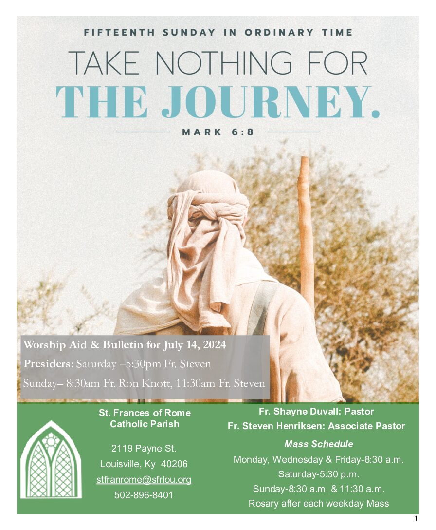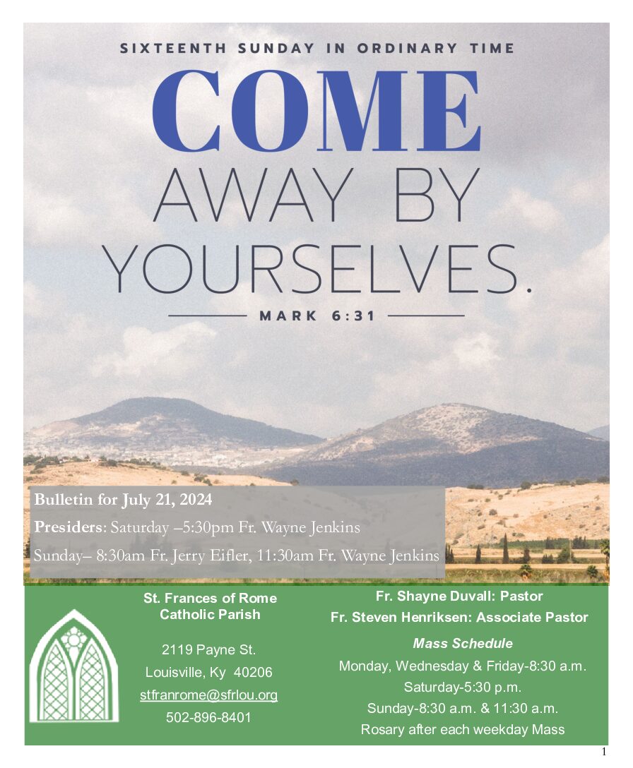 Click here for the bulletin for the 16th weekend in Ordinary Time.