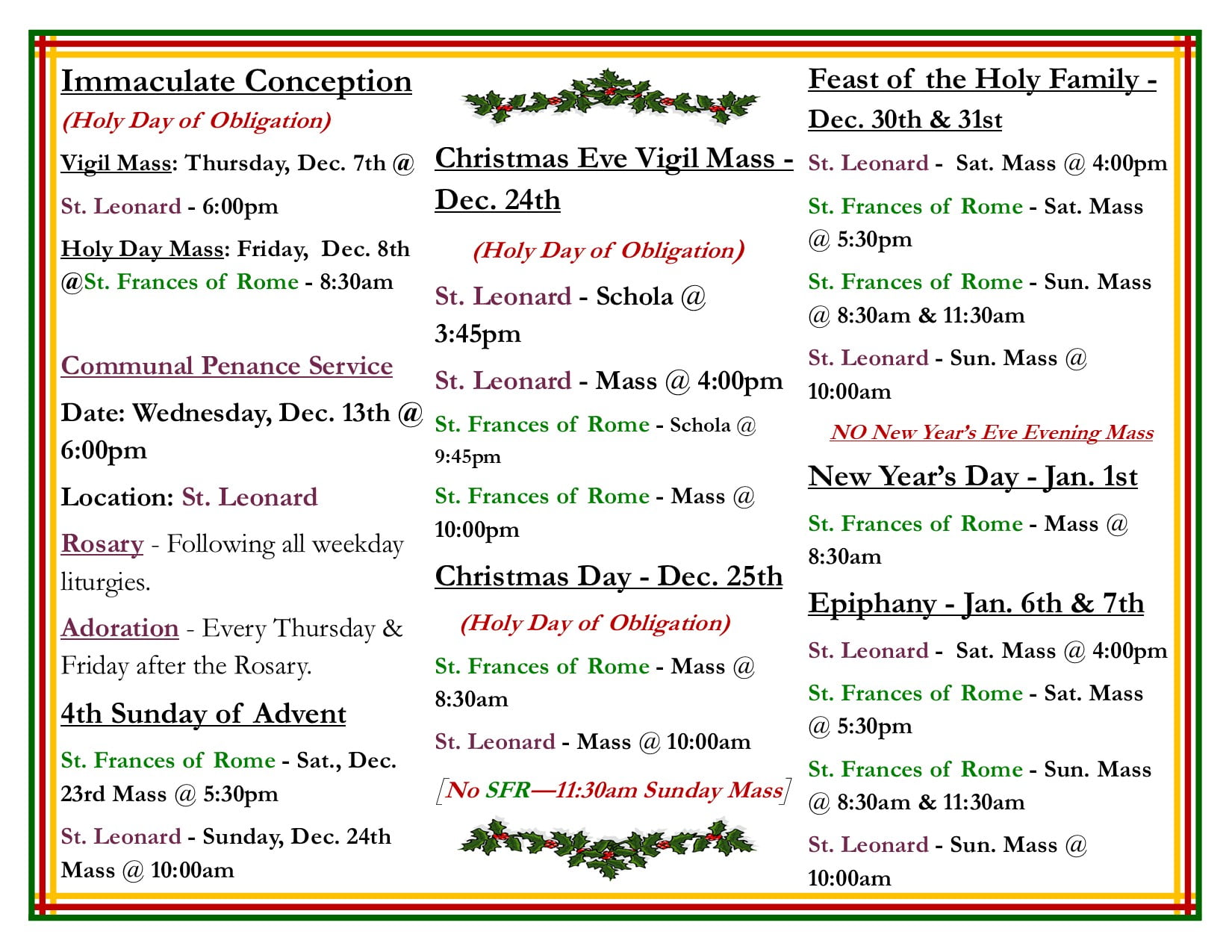 Be sure to check out this schedule for all the events of Advent and Christmas for both parishes.