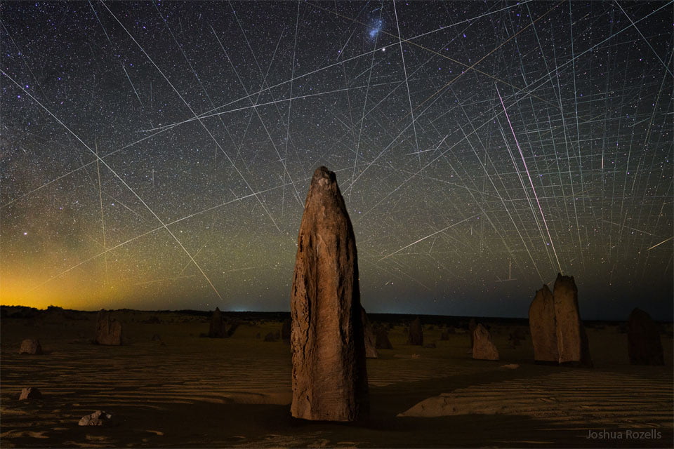Photo by Joshua Rozells, showing the numbers of satellites crossing the sky at the Pinnacles in the remote outback of Australia Last year at this time I had the good …