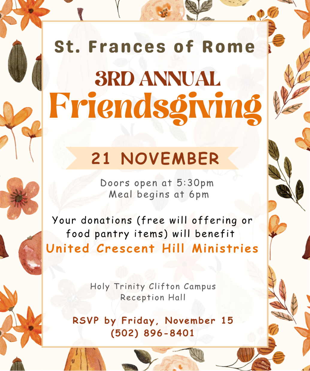 Our Friendsgiving Celebration is almost here. We need to know how much food to have for everyone, so please RSVP this week if you want to join us. Call the …