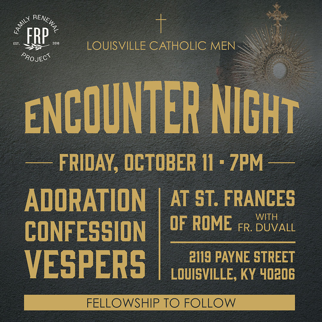 Join fellow Catholic Men for Adoration, Confession, and Vespers at St. Frances of Rome Church with fellowship to follow.
