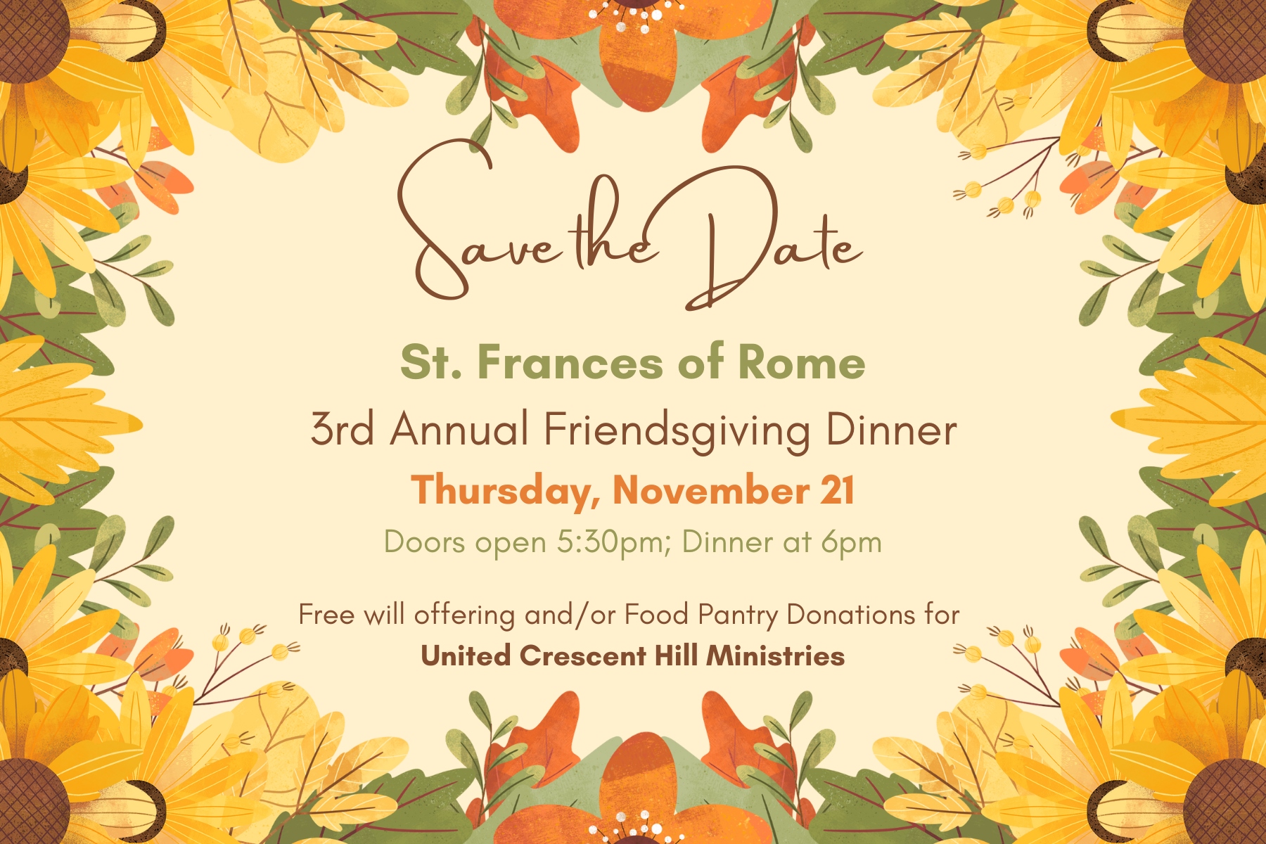 Join us Thursday, November 21st for our 3rd annual Friendsgiving Dinner. More details to come.
