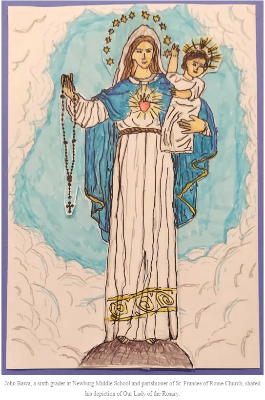 John Bawa, a sixth grader at Newburg Middle School and parishioner of St. Frances of Rome, shared his depiction of Our Lady of the Rosary that was featured in The …
