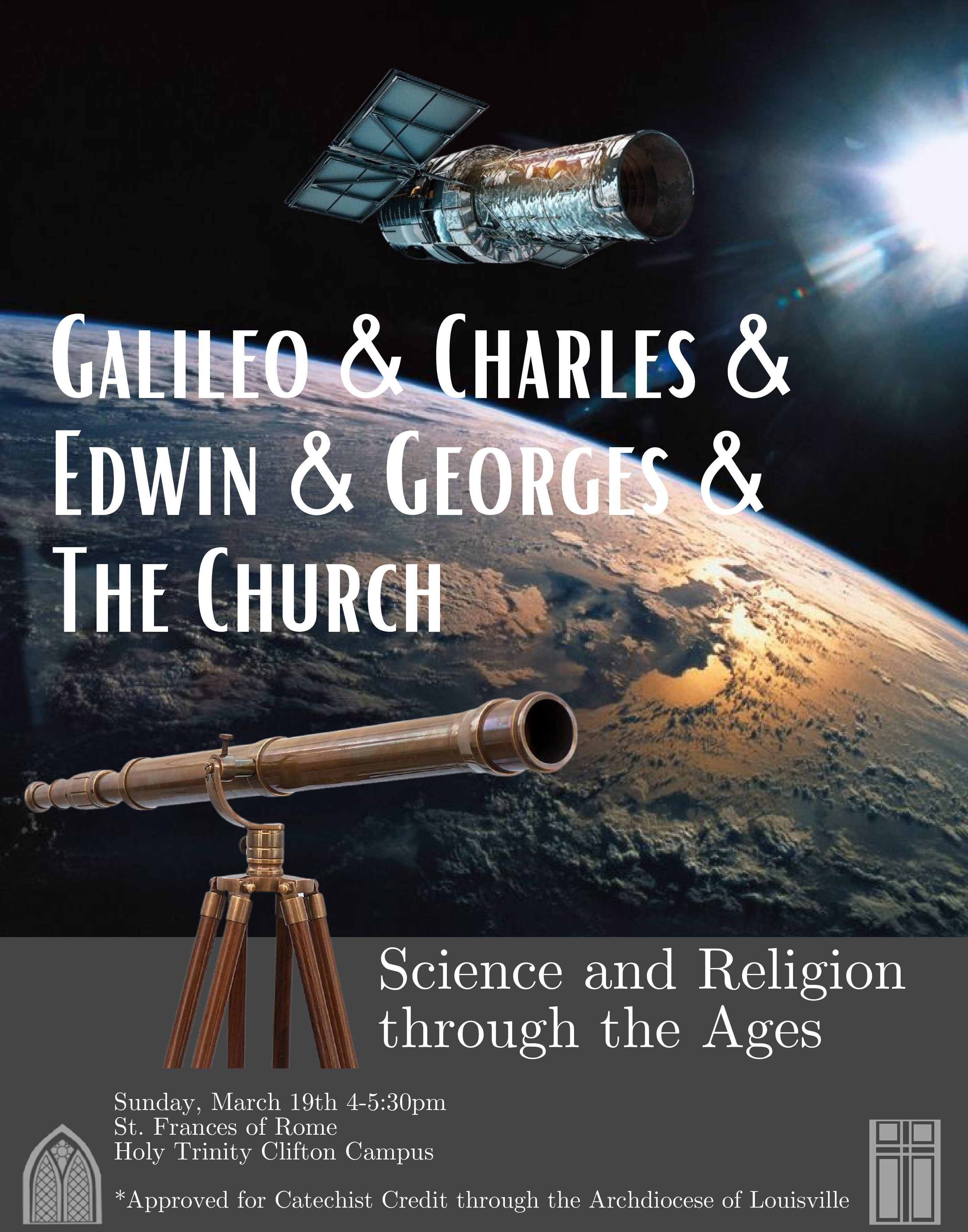 The Faith and Science talk scheduled for March will ONLY be held on Sunday, March 19 from 4-5:30pm on the St. Frances of Rome campus. We will gather in the …