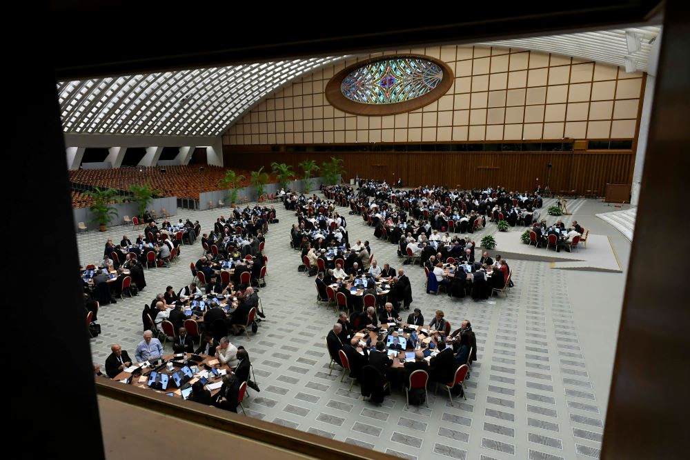 Visuals have always been important in the Catholic world, and the visual that has been most striking to me from this past month’s synod is of the Paul VI Audience Hall, set up with round tables where all of the delegates face each other as equals. While this doesn’t look all that unusual to us who have been involved in any kind of gathering that involves small group breakout and discussion, it’s far from the usual configuration of any kind of gathering of catholic bishops. As this session of the synod draws to a close this week, it has issued a “Letter to the People of God” which draws attention to the value of listening, and the need for further listening, especially to people on the margins of society and of the church. The kind of listening that can only happen when people have the opportunity to look each other in the eye. When they have the opportunity to sit together in silent prayer for the guidance of the Spirit.